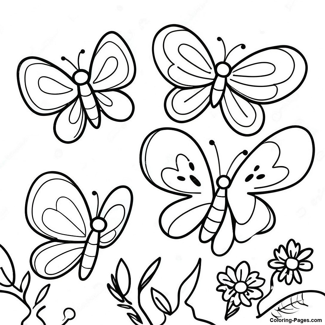 Download Printable PDF of Cheerful Butterflies Fluttering Coloring Page