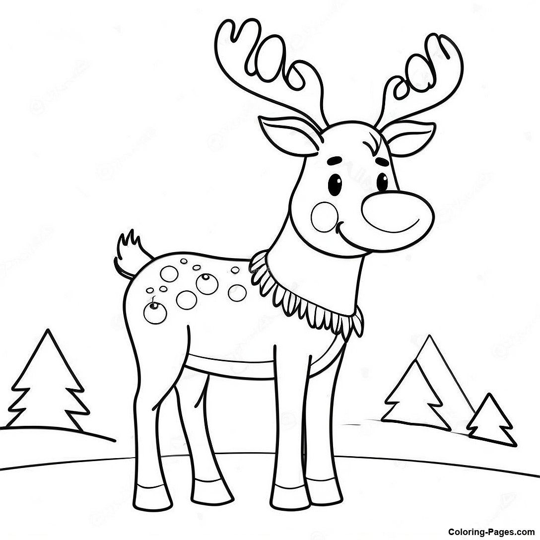 Download Printable PDF of Cheerful Reindeer Coloring Page