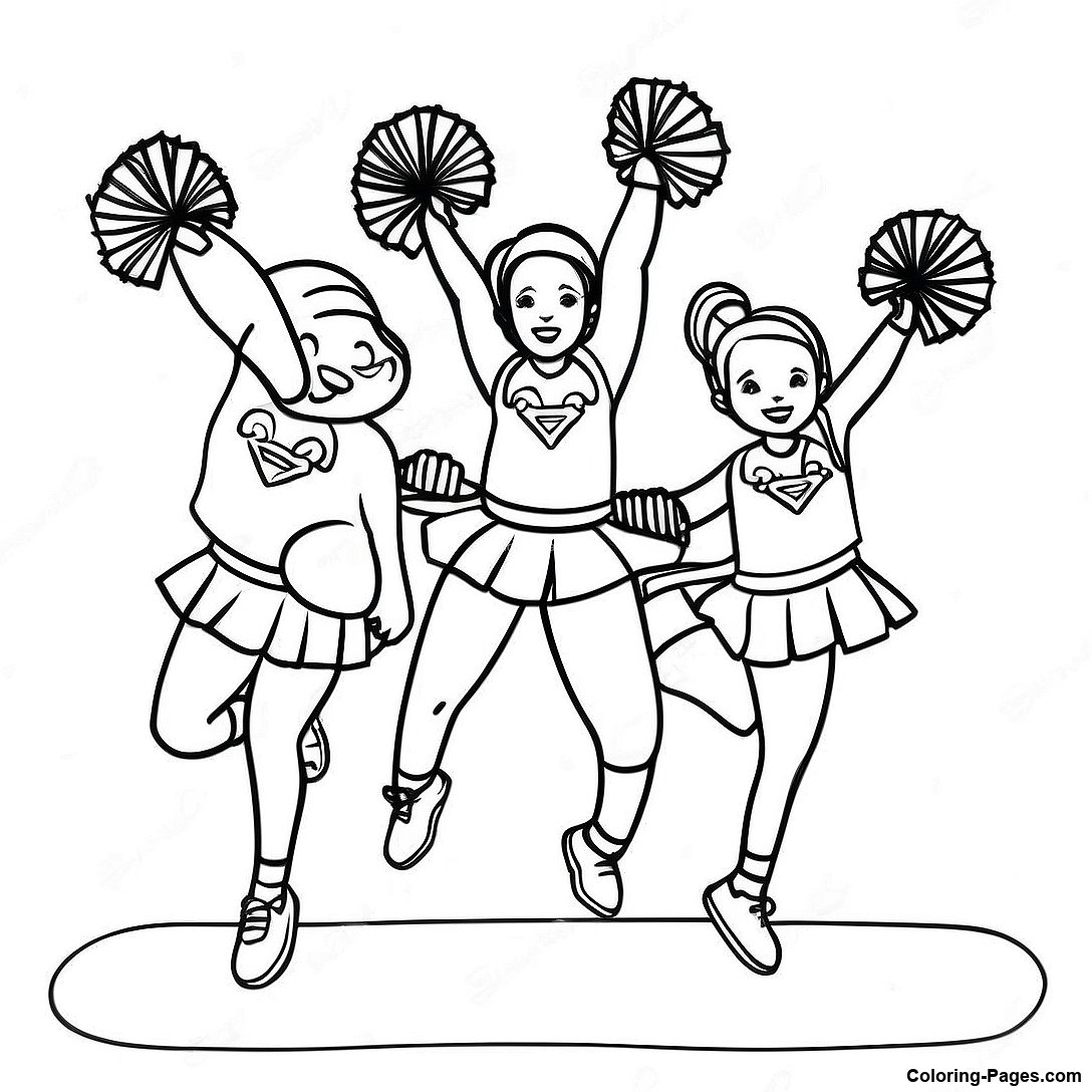 Download Printable PDF of Cheerleaders Performing Stunts Coloring Page