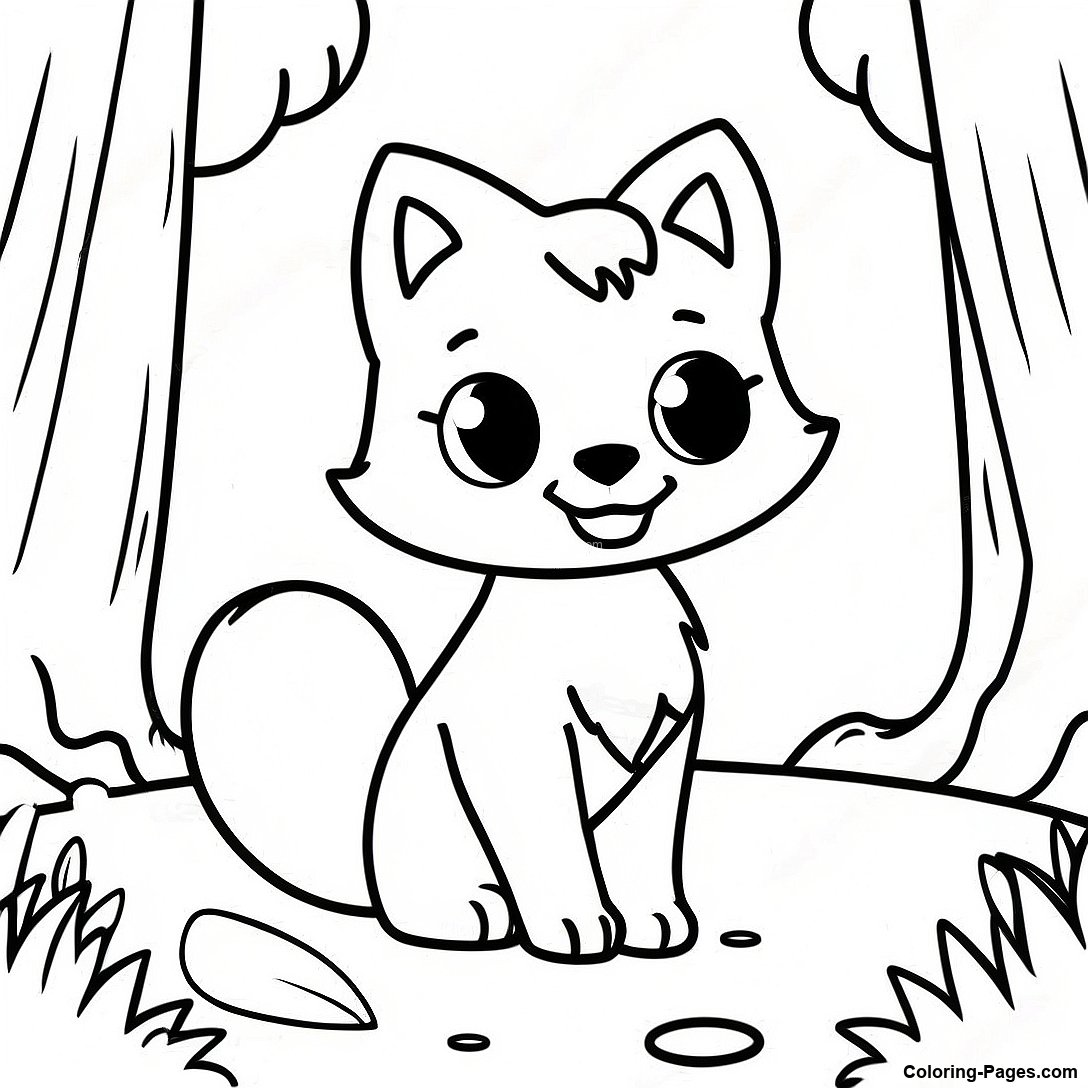 Download Printable PDF of Chibi Fox In A Forest Coloring Page