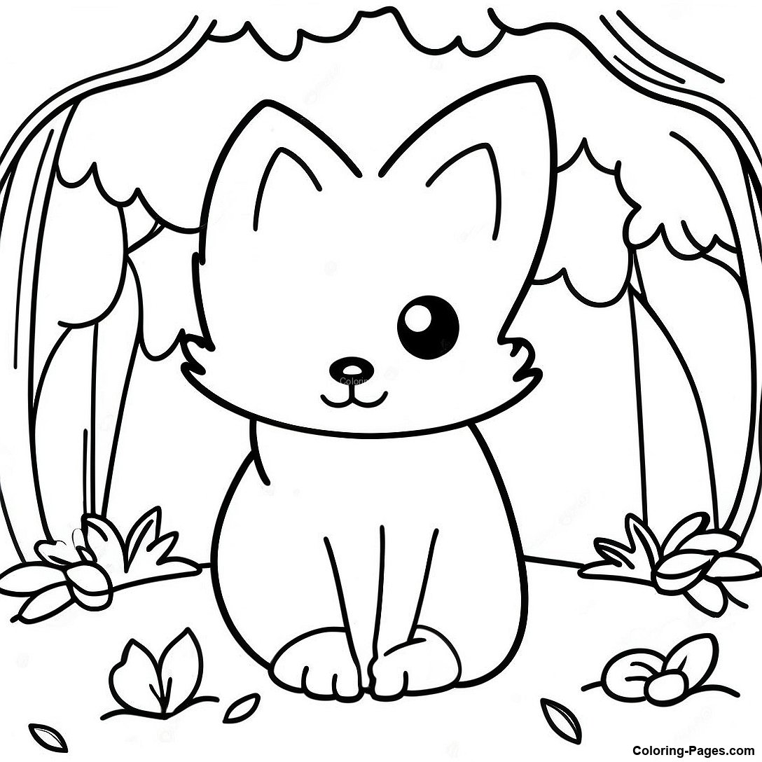 Download Printable PDF of Chibi Fox In A Forest Coloring Page