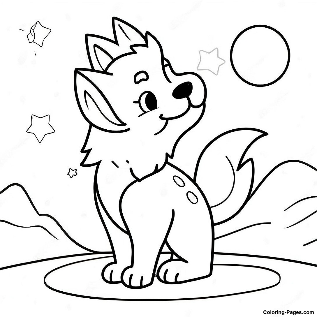 Download Printable PDF of Chibi Wolf Howling At The Moon Coloring Page