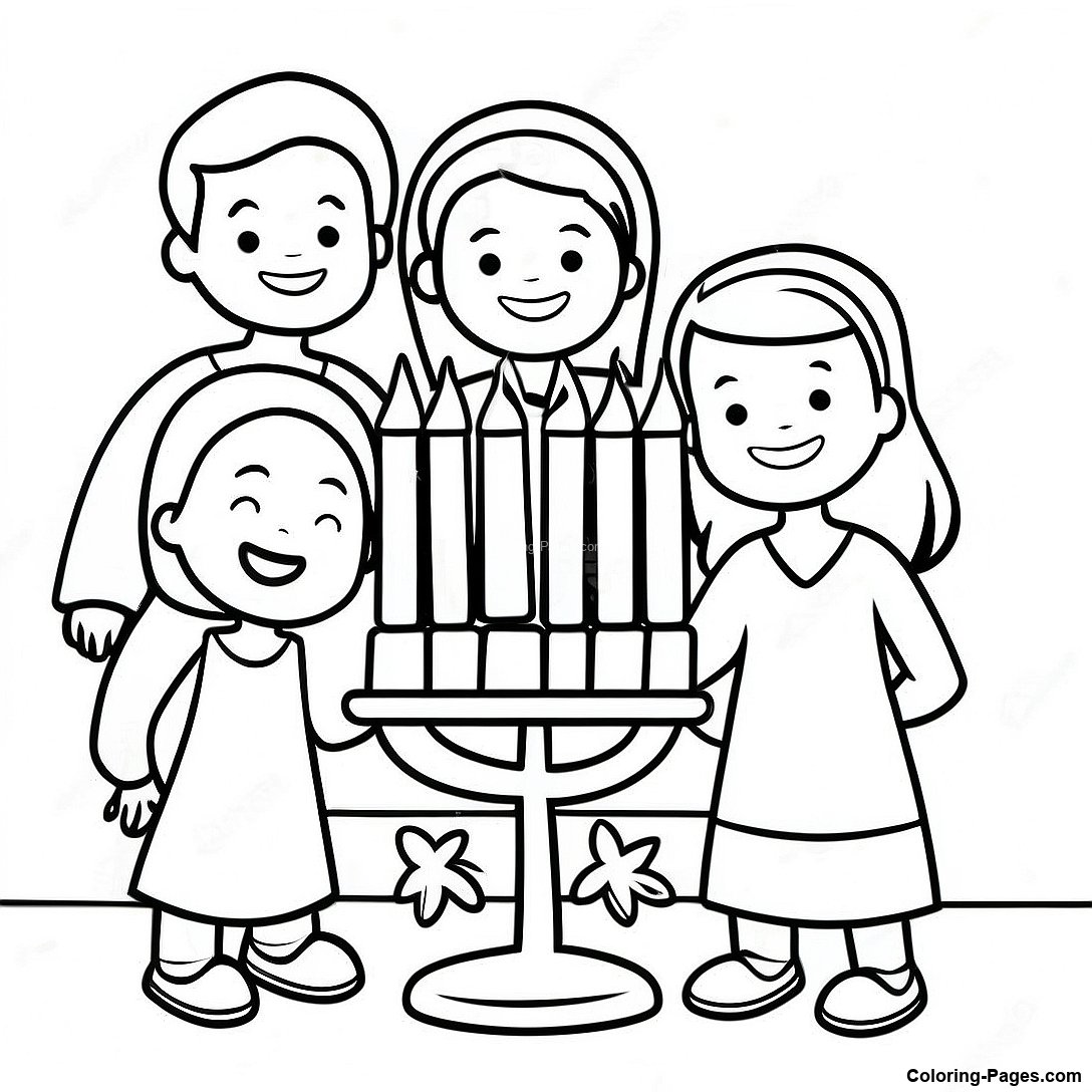 Download Printable PDF of Children Lighting The Menorah Coloring Page