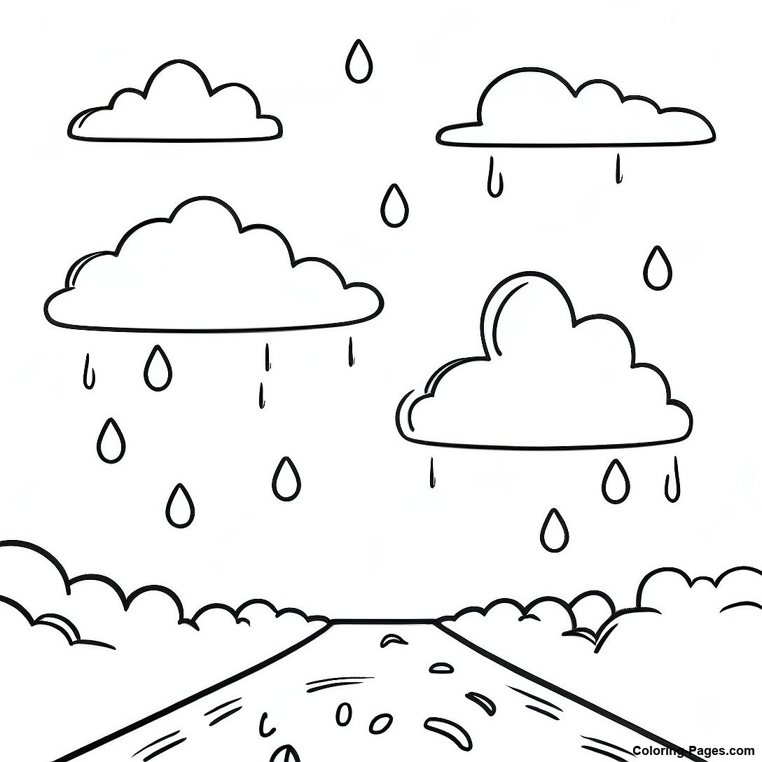 Download Printable PDF of Cloudy Sky With Rain Coloring Page