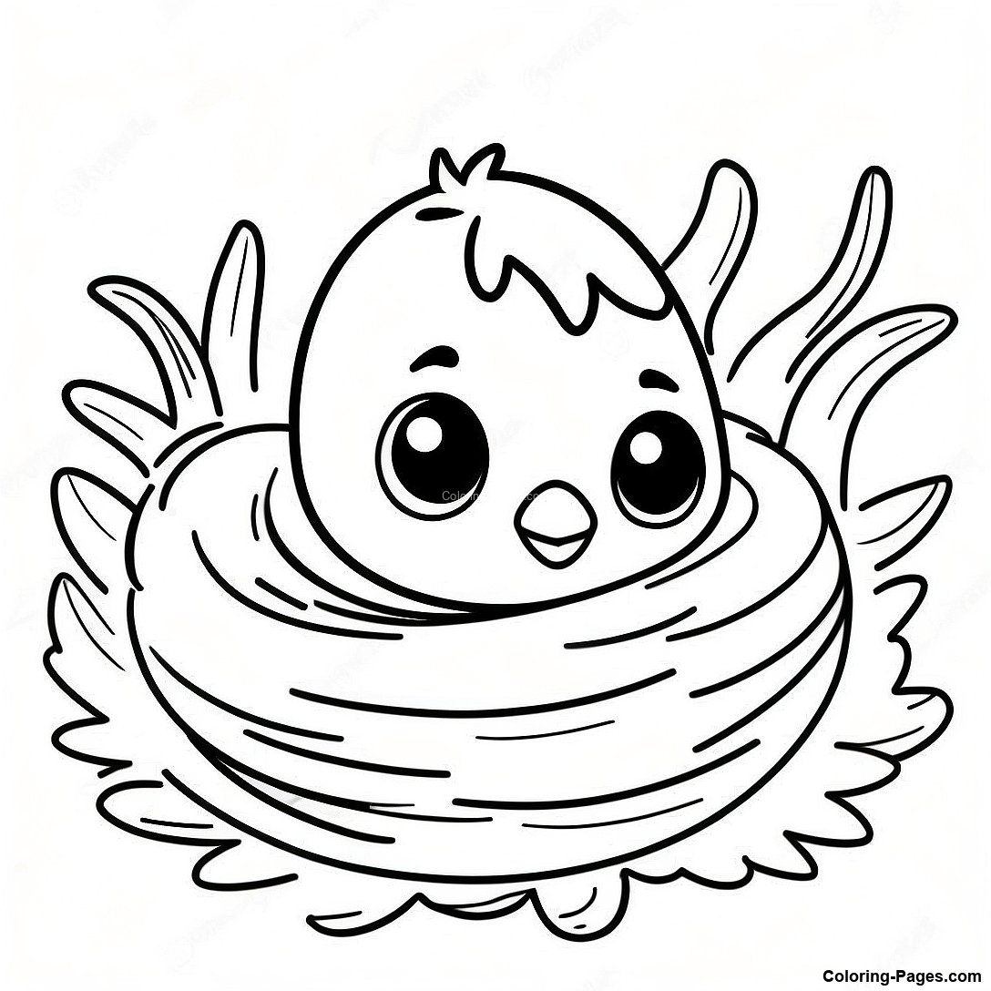 Download Printable PDF of Colorful Baby Chick In Nest Coloring Page