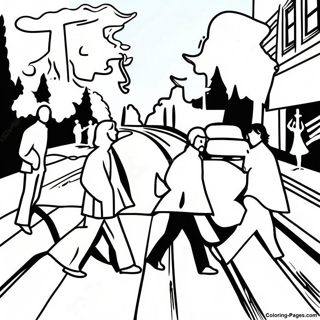 Download Printable PDF of Colorful Beatles Album Cover Coloring Page