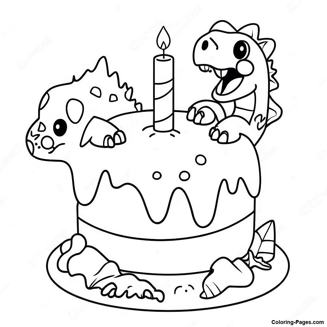 Colorful Birthday Cake With Dinosaurs Coloring Page