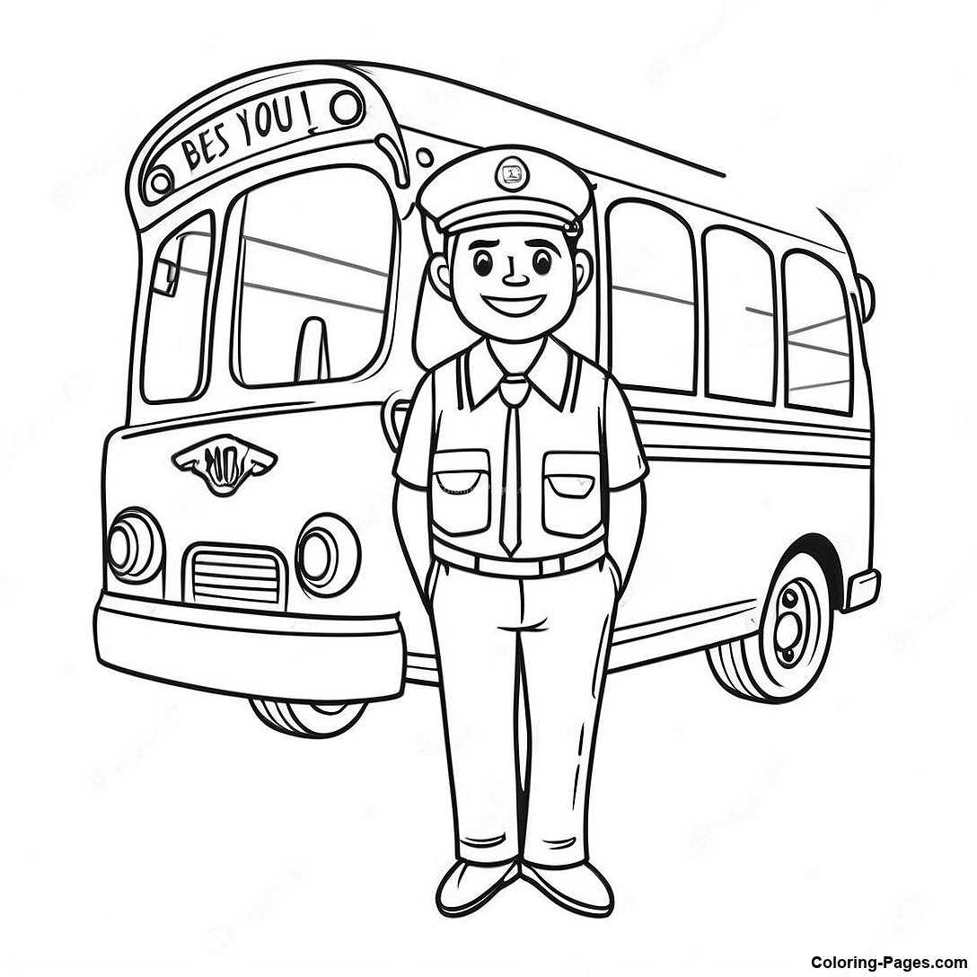 Download Printable PDF of Colorful Bus Driver Thank You Card Coloring Page