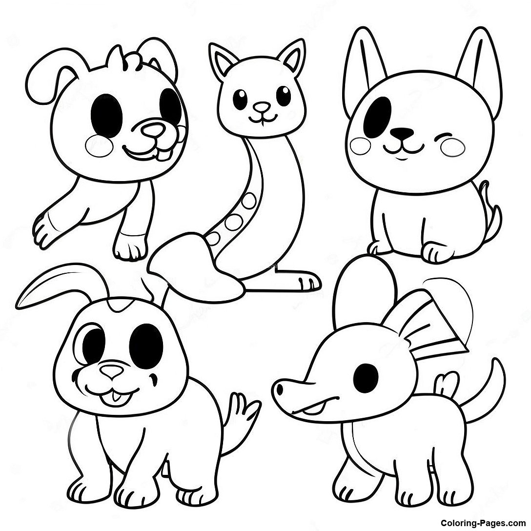 Download Printable PDF of Colorful Cartoon Animals Coloring Page