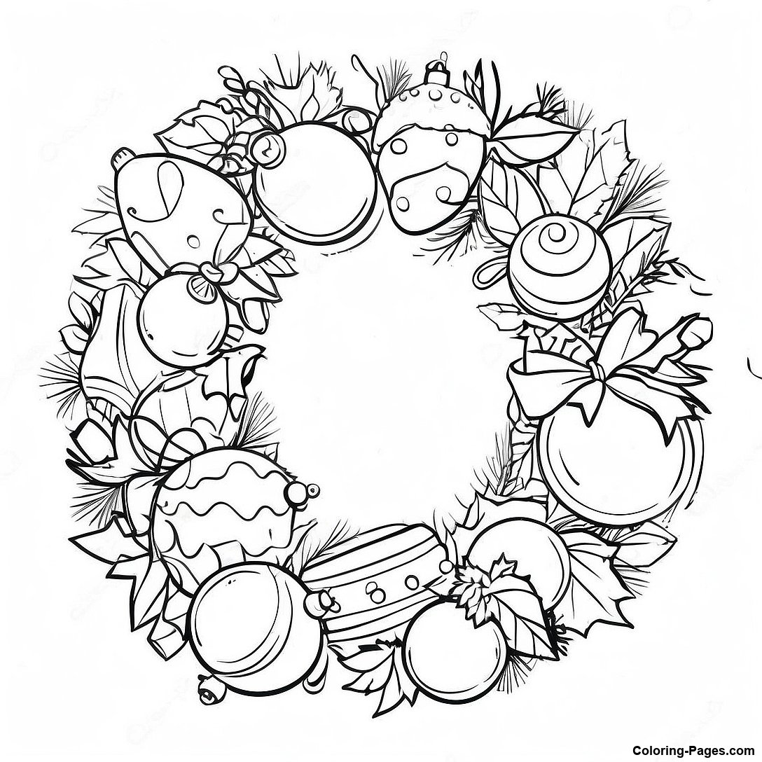 Colorful Christmas Wreath With Ornaments Coloring Page