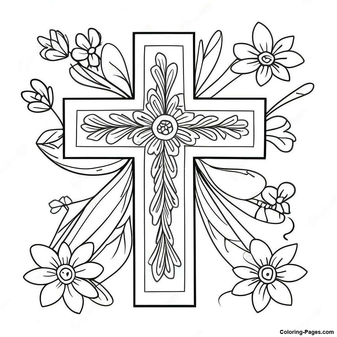 Download Printable PDF of Colorful Cross With Flowers Coloring Page