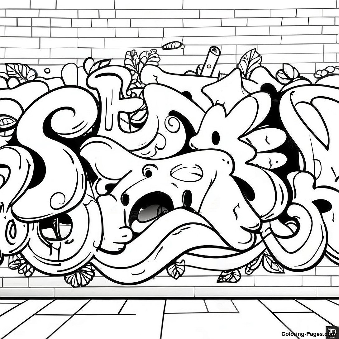 Download Printable PDF of Colorful Graffiti Wall Coloring Page