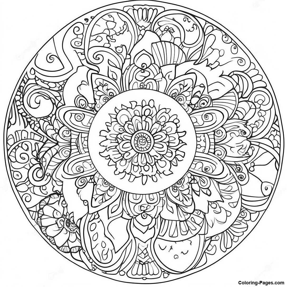 Download Printable PDF of Colorful Halloween Mandala Coloring Page