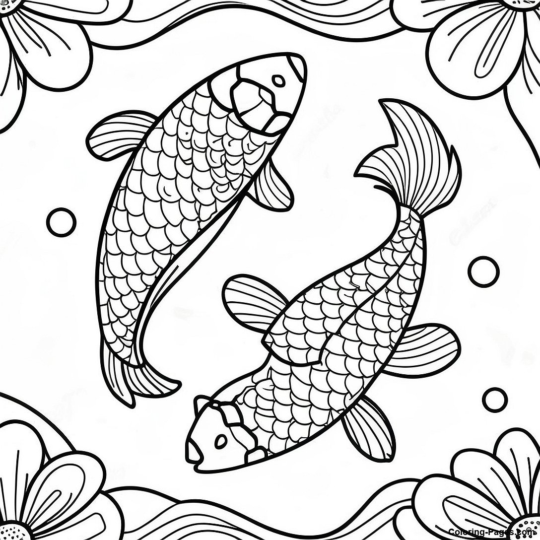 Download Printable PDF of Colorful Koi Fish Pond Coloring Page