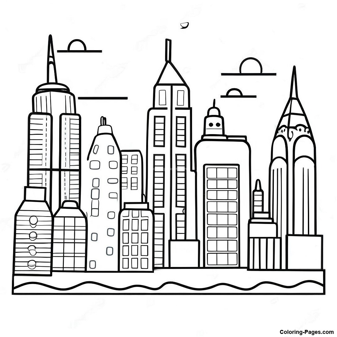 Download Printable PDF of Colorful Lego City Skyline Coloring Page