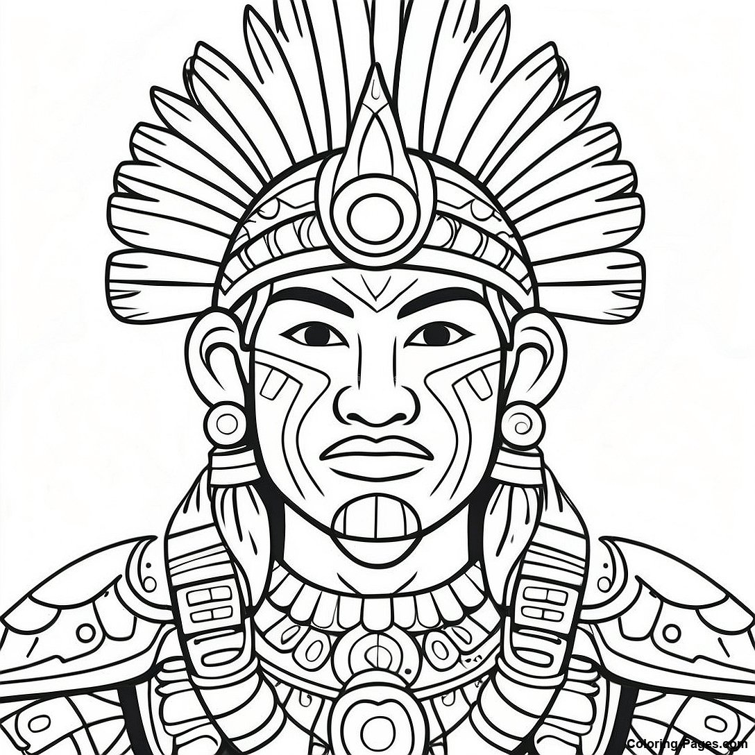 Colorful Mayan Warrior Coloring Page