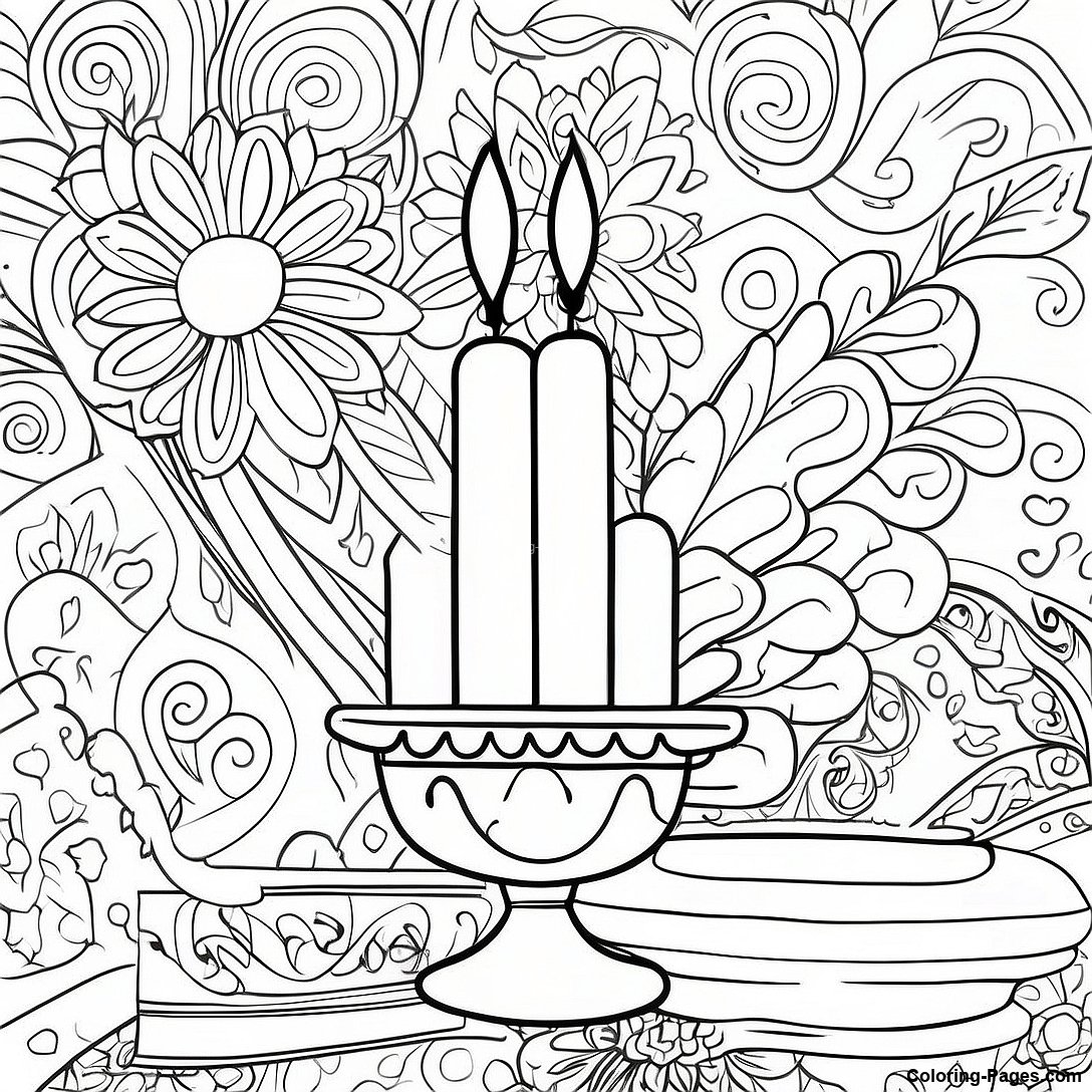 Download Printable PDF of Colorful Shabbos Candles Coloring Page