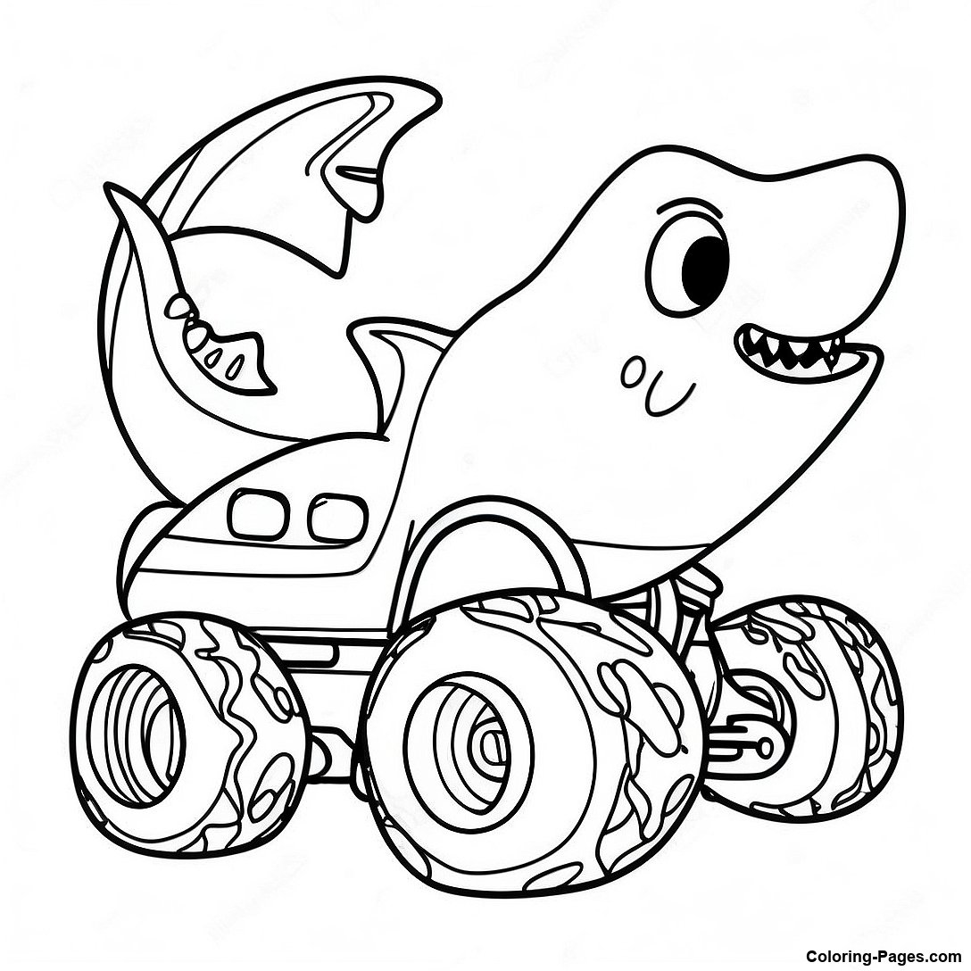 Download Printable PDF of Colorful Shark Monster Truck Coloring Page