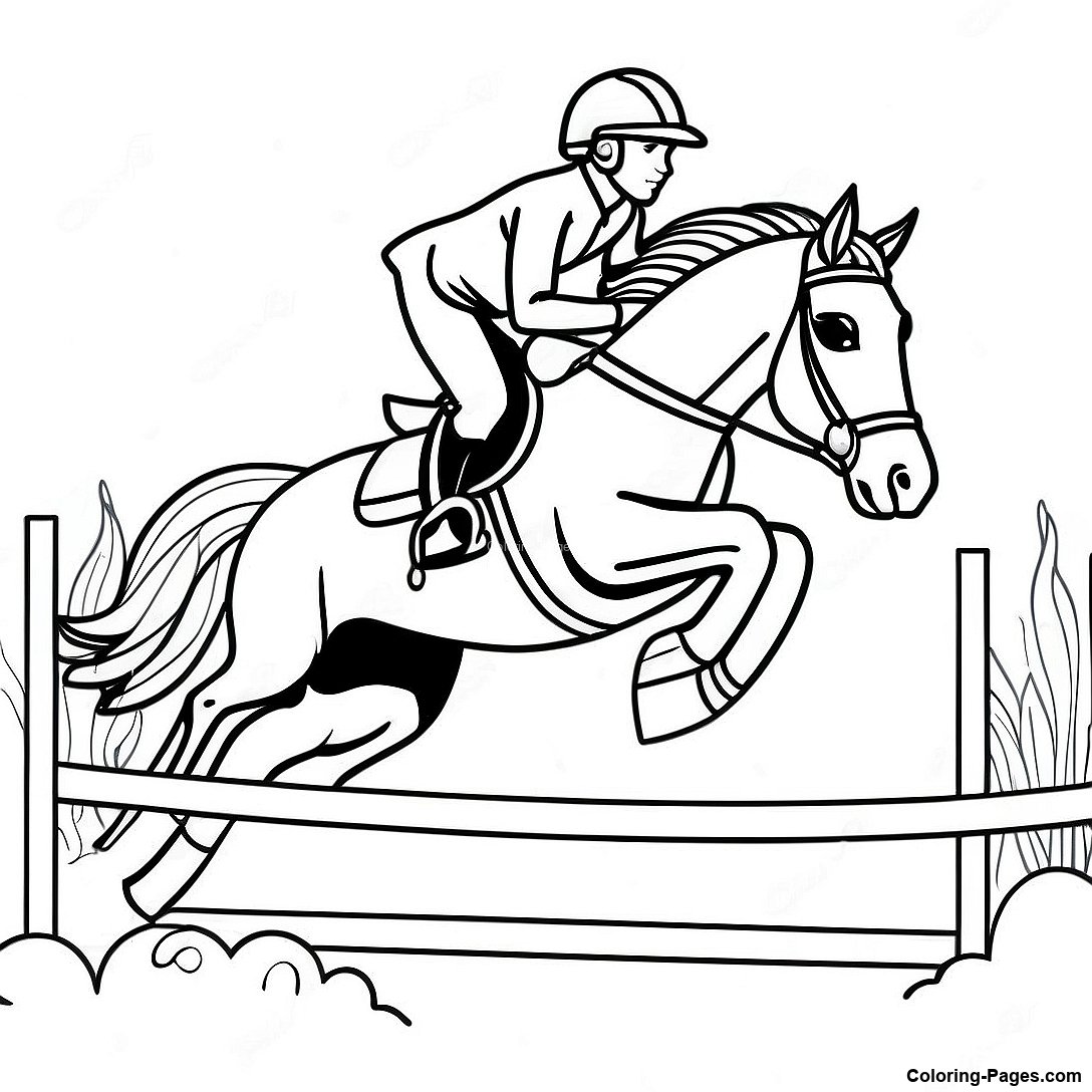 Download Printable PDF of Colorful Show Jumping Horse With Rider Coloring Page