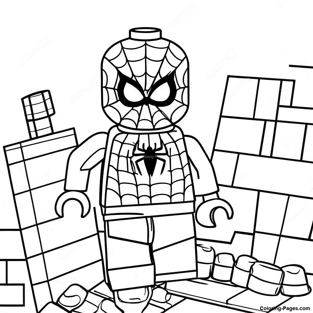 Lego Spiderman in a Dynamic Pose Coloring Page