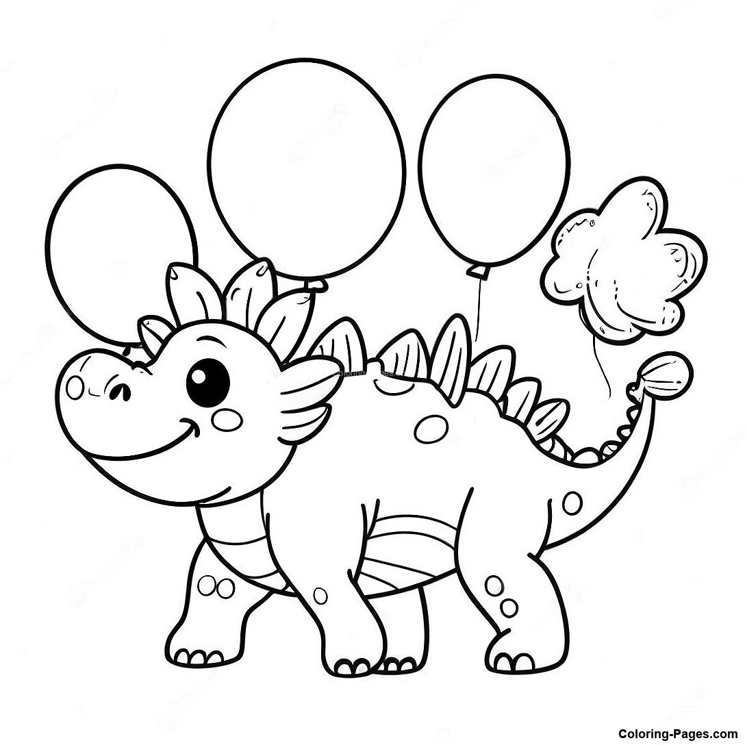 Colorful Stegosaurus With Balloons Coloring Page
