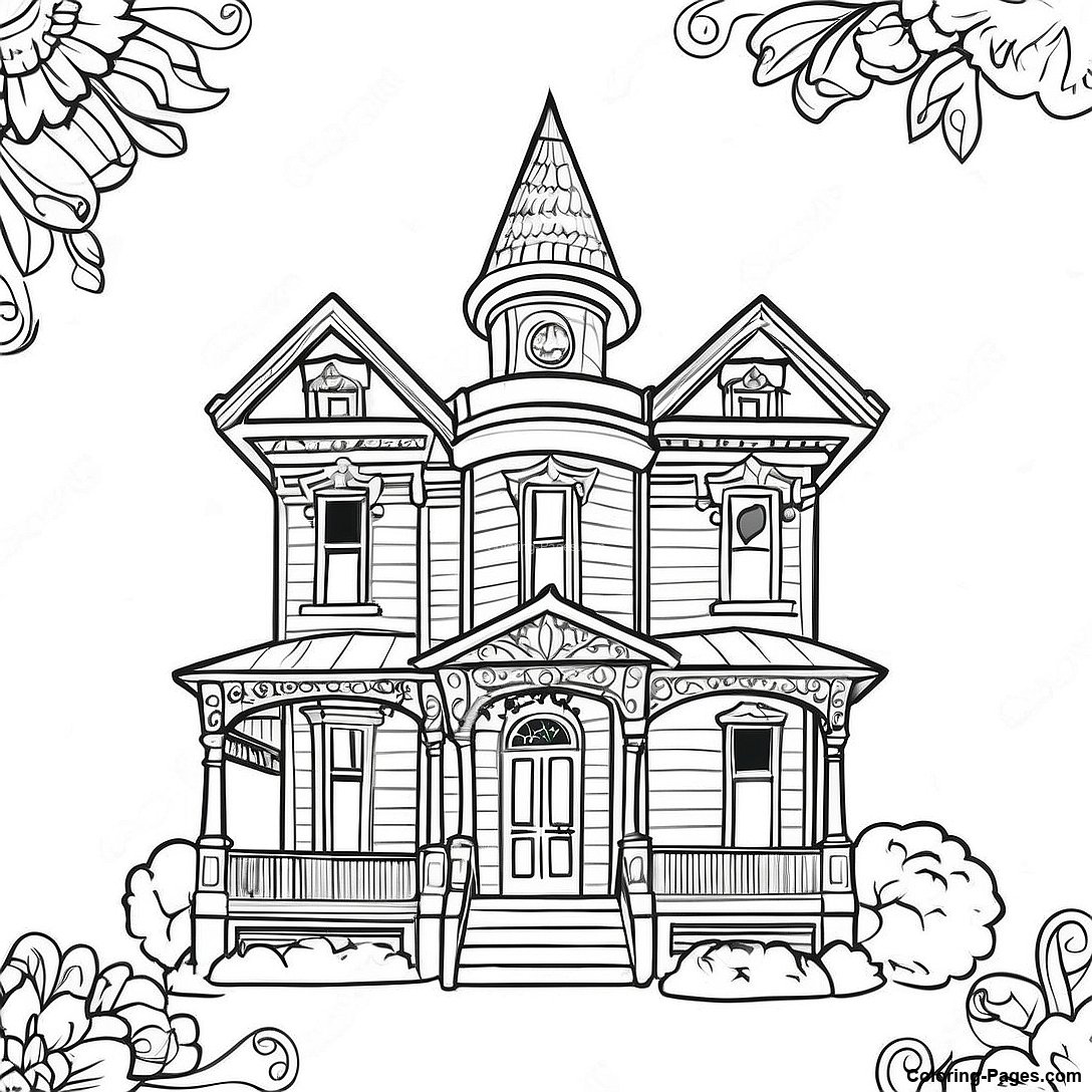 Download Printable PDF of Colorful Victorian House Coloring Page
