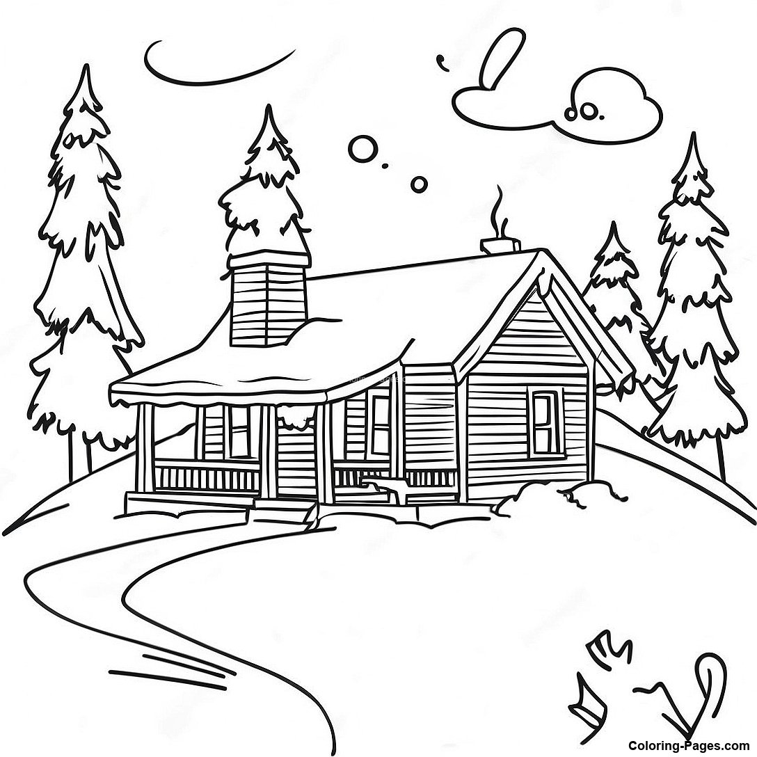 Download Printable PDF of Cozy Cabin In The Snow Coloring Page