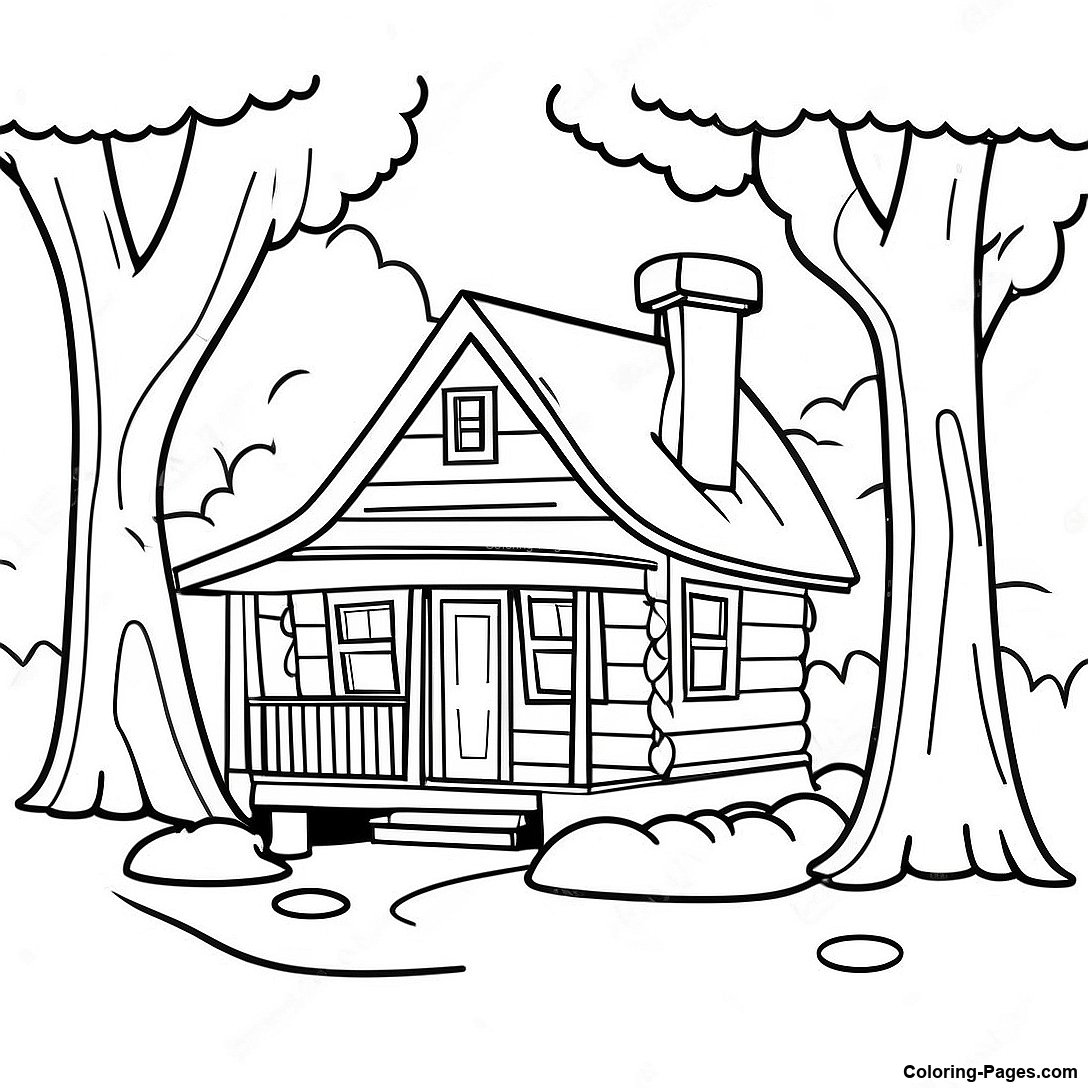 Cozy Cabin In The Woods Coloring Page
