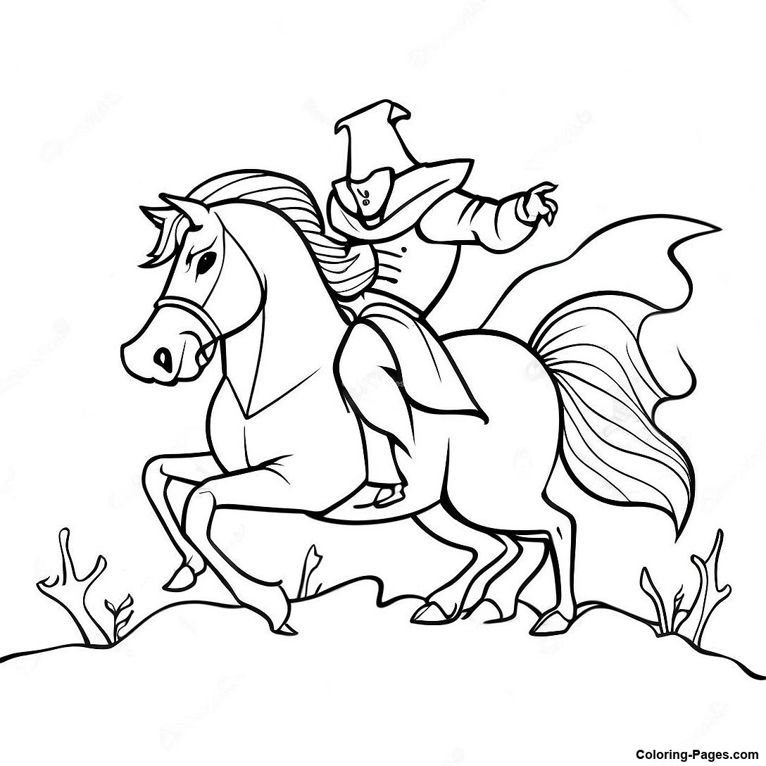 Download Printable PDF of Creepy Headless Horseman Riding Coloring Page