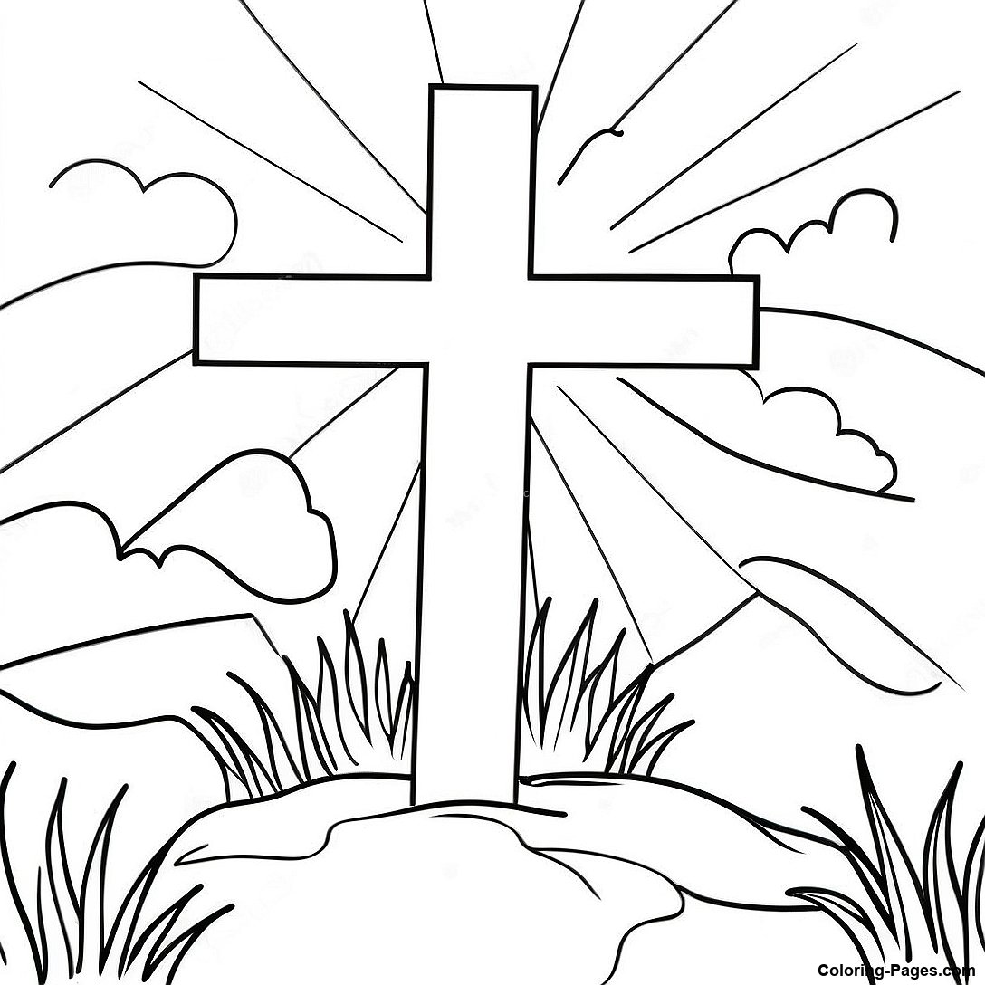 Download Printable PDF of Cross In The Sunset Good Friday Coloring Page