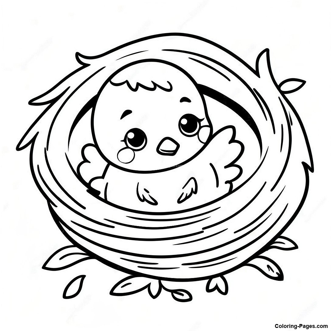 Download Printable PDF of Cute Baby Chick In A Nest Coloring Page