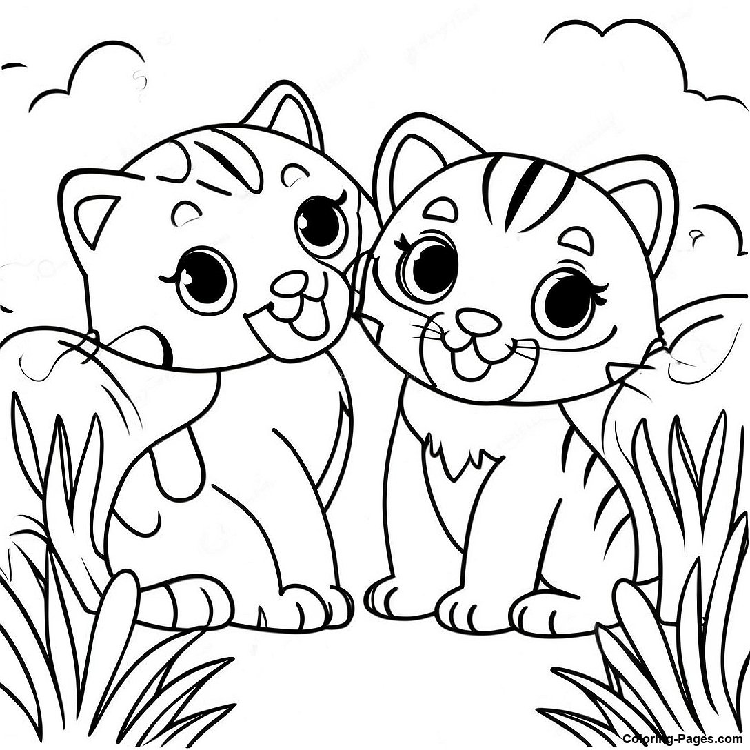 Cute Bengals Playing In The Grass Coloring Page