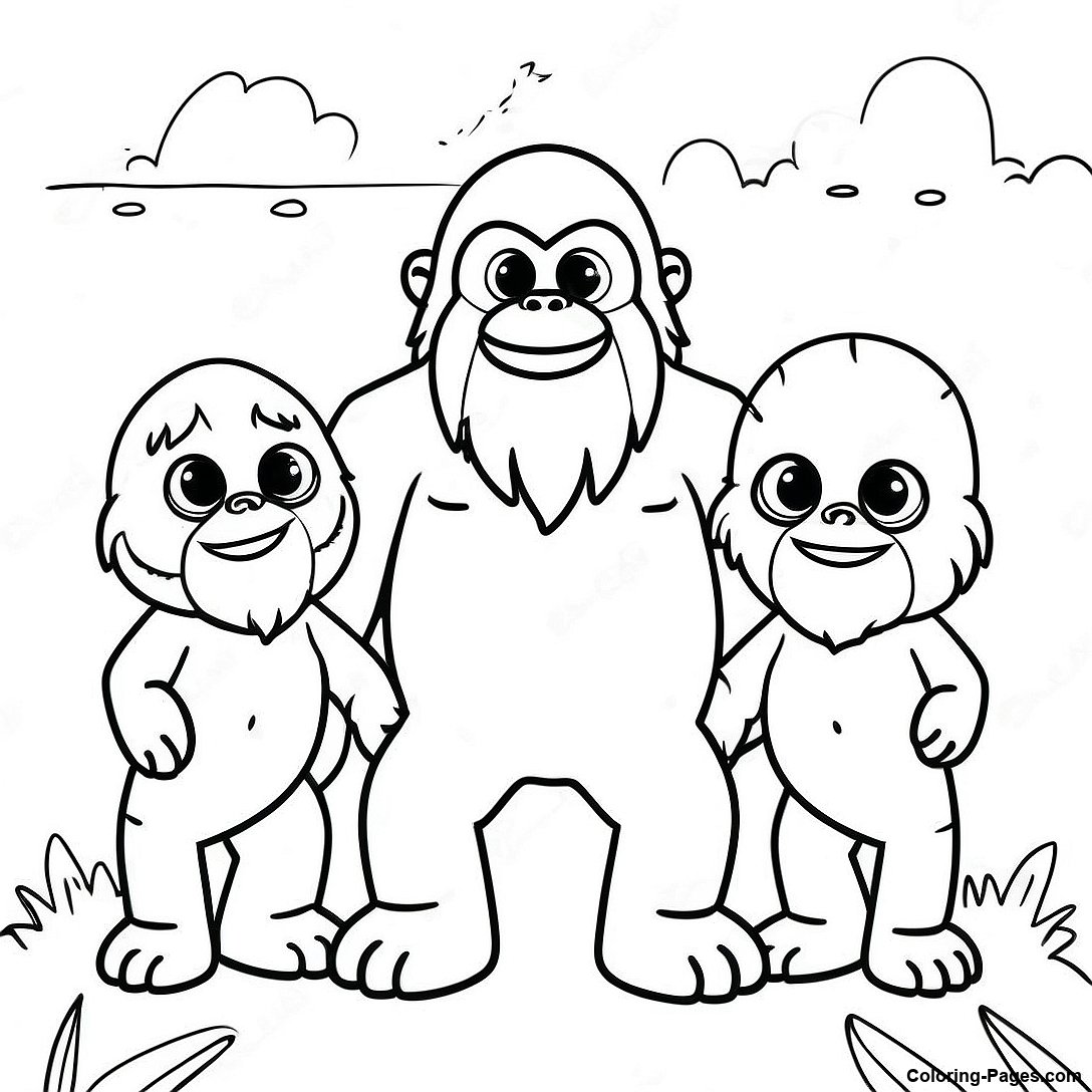 Download Printable PDF of Cute Bigfoot With Friends Coloring Page