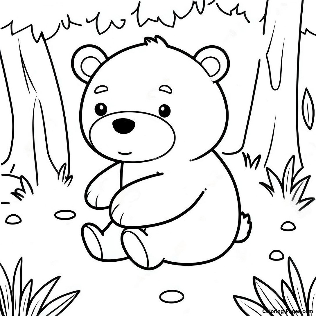 Cute Brown Bear In A Forest Coloring Page