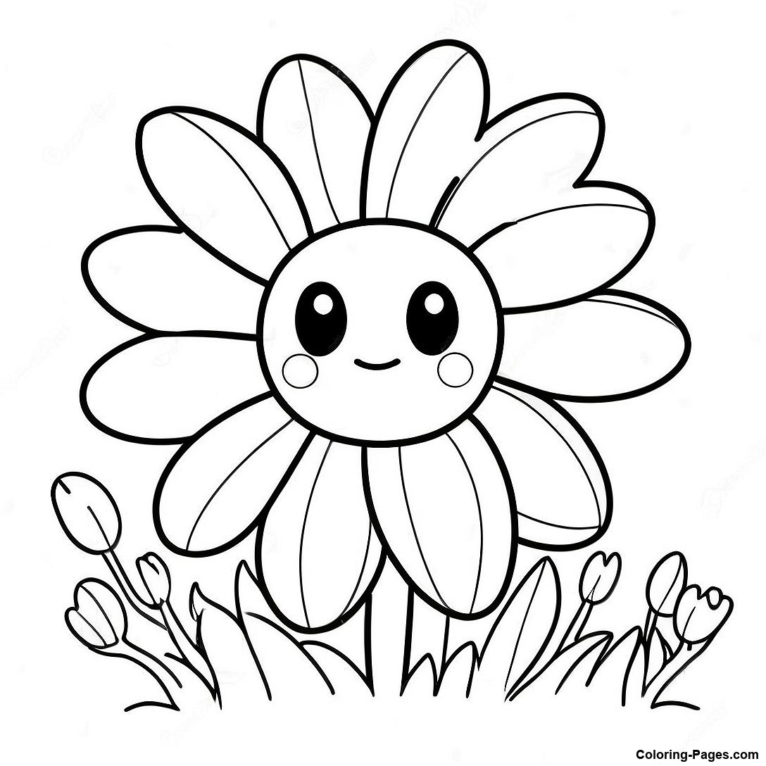 Download Printable PDF of Cute Cartoon Daisy Coloring Page