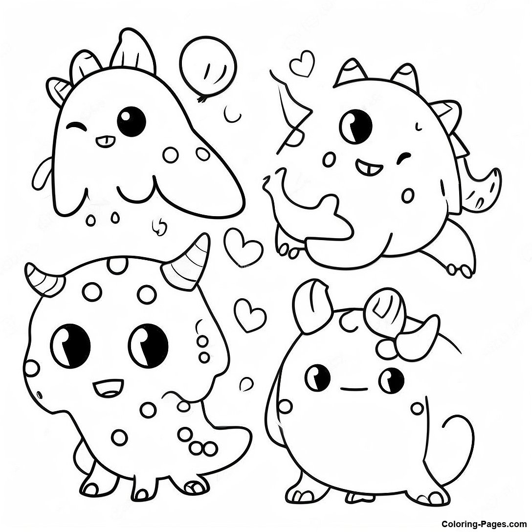 Download Printable PDF of Cute Cartoon Monsters Coloring Page