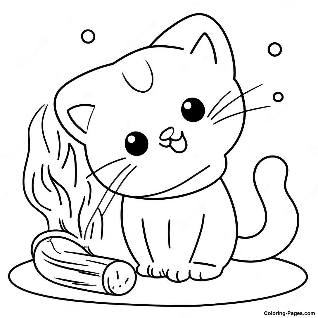 Download Printable PDF of Cute Cat By The Fire Coloring Page