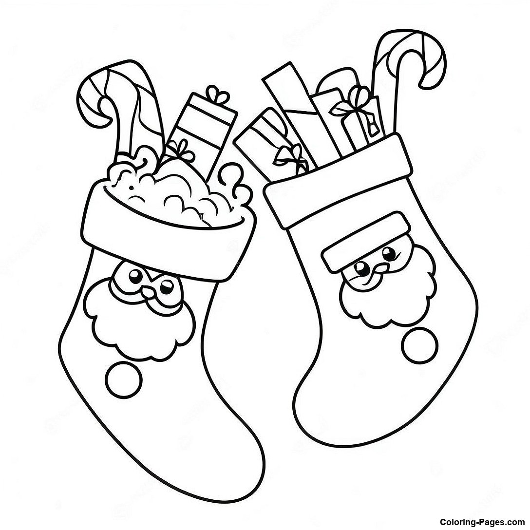 Download Printable PDF of Cute Christmas Stockings With Santa Claus Coloring Page
