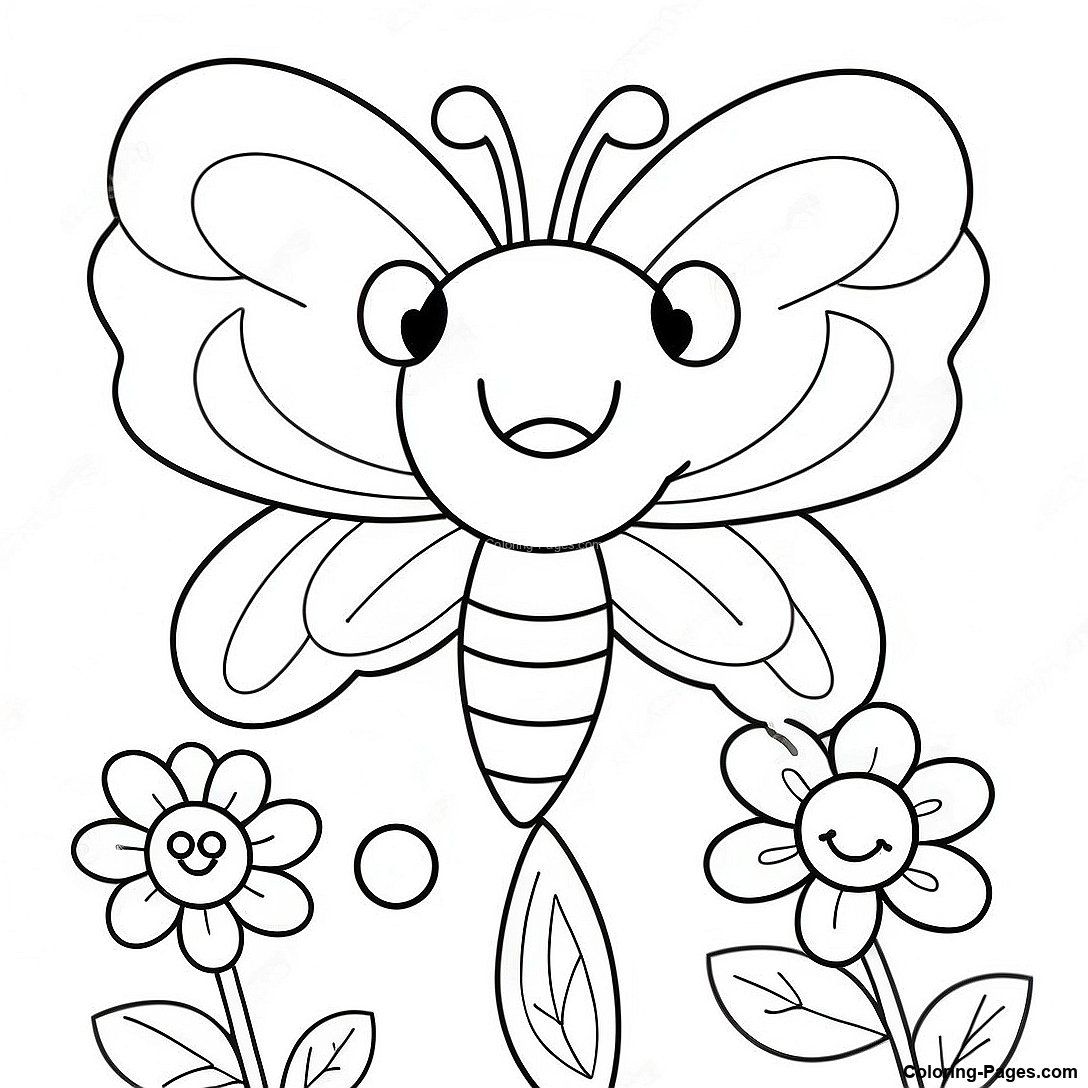 Cute Flower Butterfly With Smiling Face Coloring Page