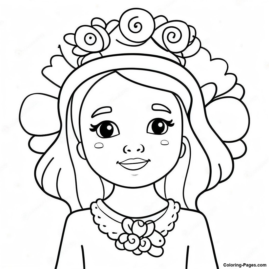 Download Printable PDF of Cute Flower Girl With A Crown Coloring Page