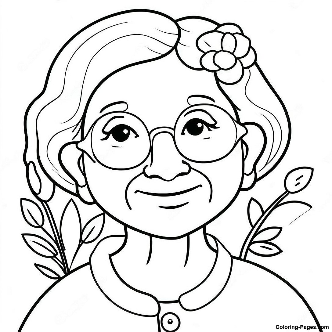 Download Printable PDF of Cute Grandma With Flowers Coloring Page
