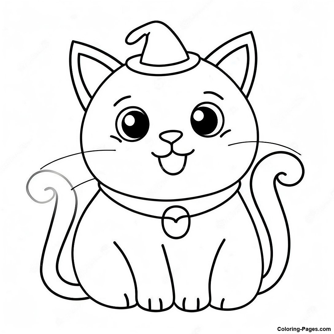 Cute Halloween Black Cat Coloring Page