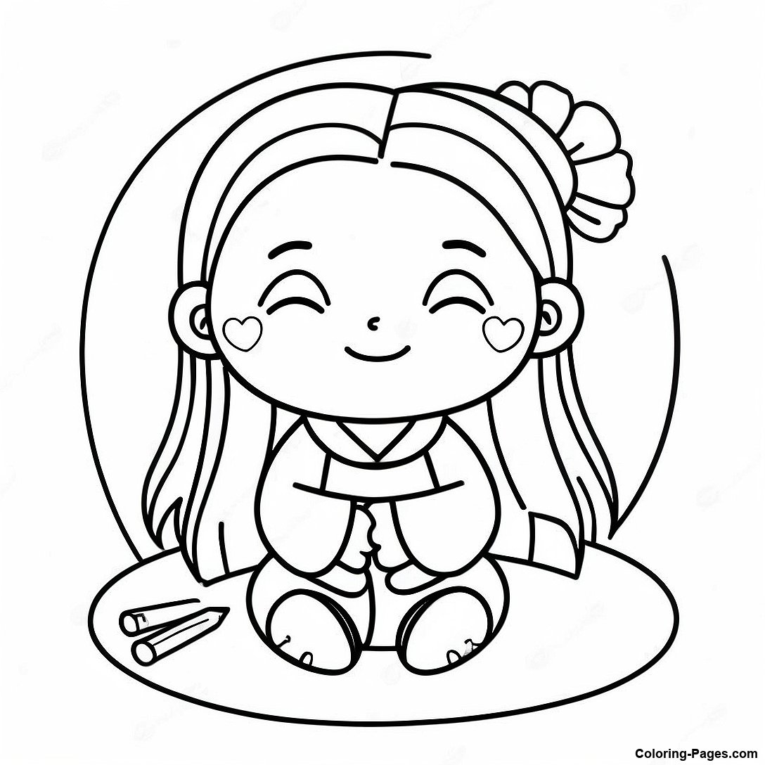 Download Printable PDF of Cute Nezuko Sitting Coloring Page