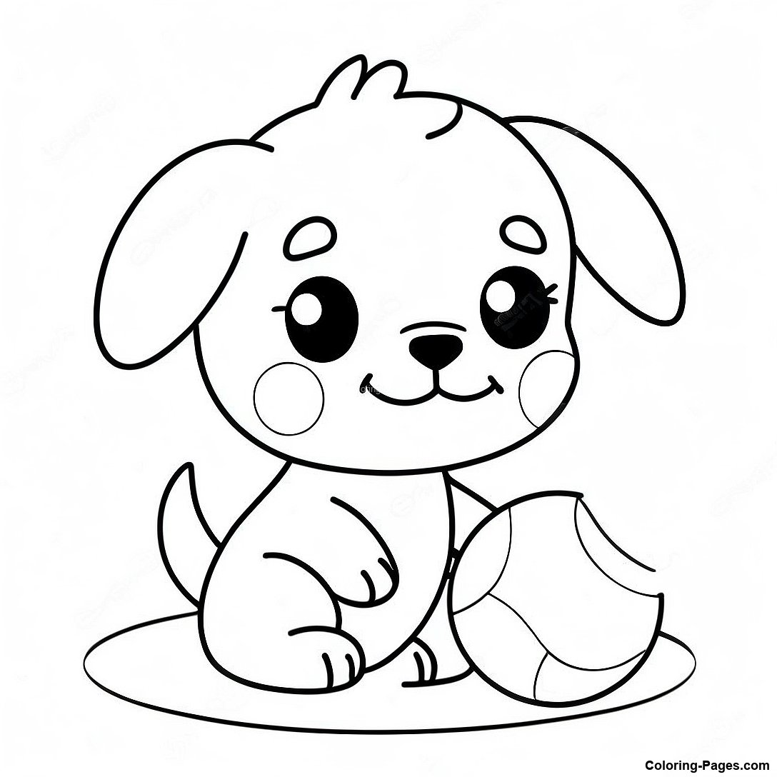 Download Printable PDF of Cute Puppy Dog Playing With Ball Coloring Page
