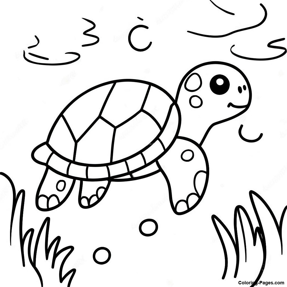 Download Printable PDF of Cute Sea Turtle Swimming Coloring Page