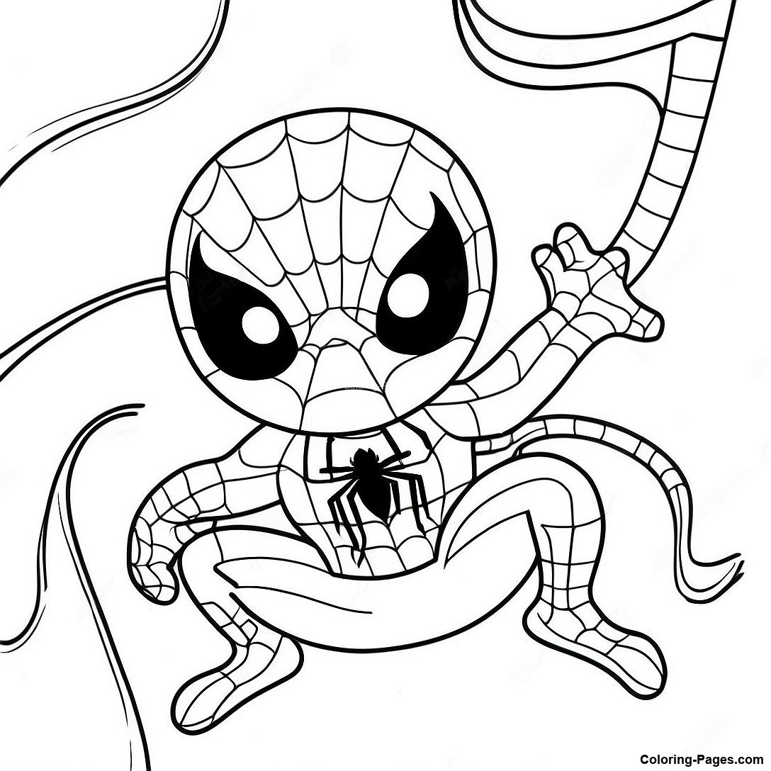 Download Printable PDF of Cute Spiderman With Webs Coloring Page