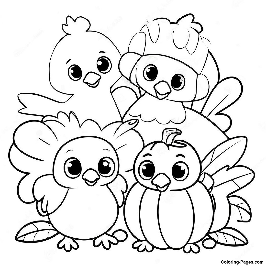 Download Printable PDF of Cute Turkeys And Pumpkins Coloring Page