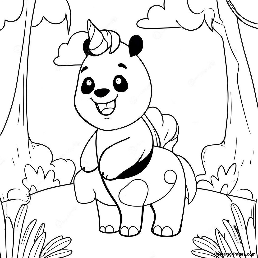 Cute Unicorn Panda In A Magical Forest Coloring Page