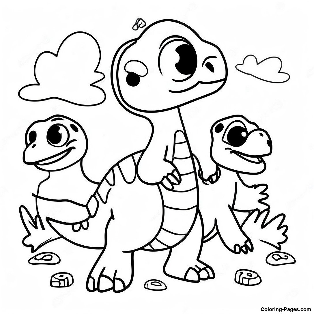 Download Printable PDF of Cute Velociraptor Playing With Friends Coloring Page