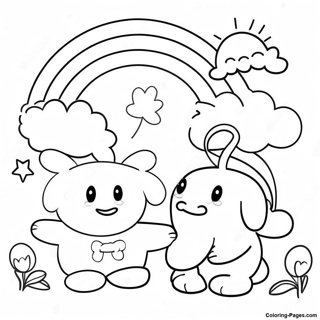 Download Printable PDF of Cyan Rainbow Friends Fun Coloring Page